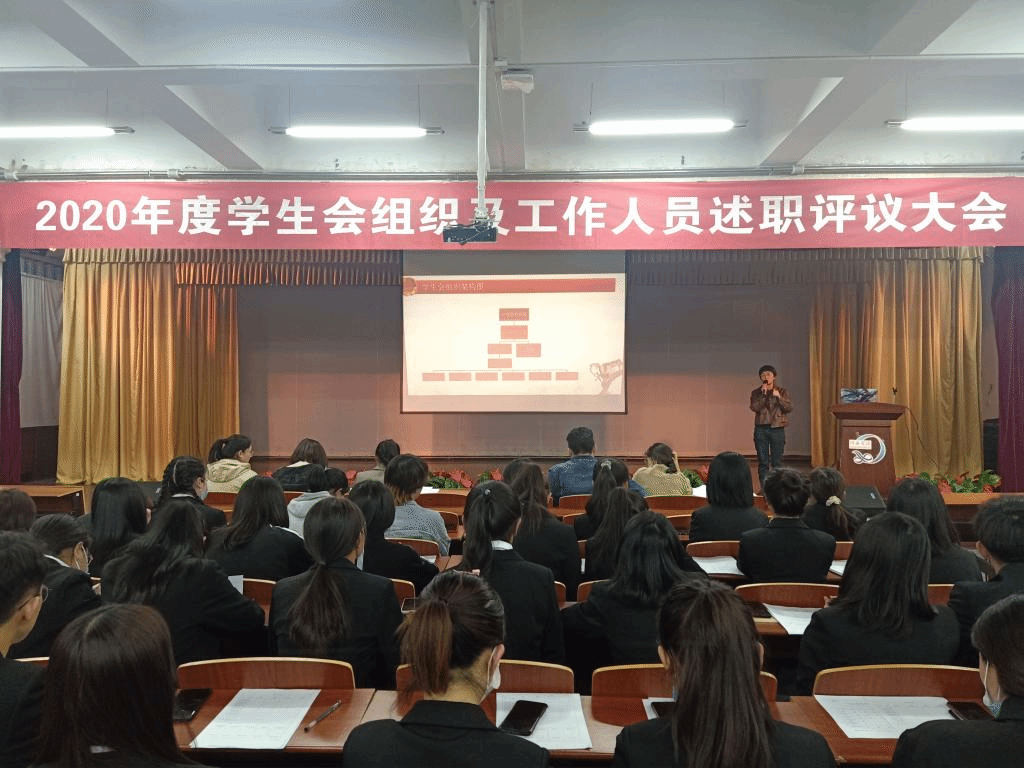 3月21日晚,77779193永利在学生发展中心多功能厅召开学生会2020年度学生会组织及工作人员述职评议大会。77779193永利团委、学生党支部委员会和学生代表共计80余人参加了评议会。