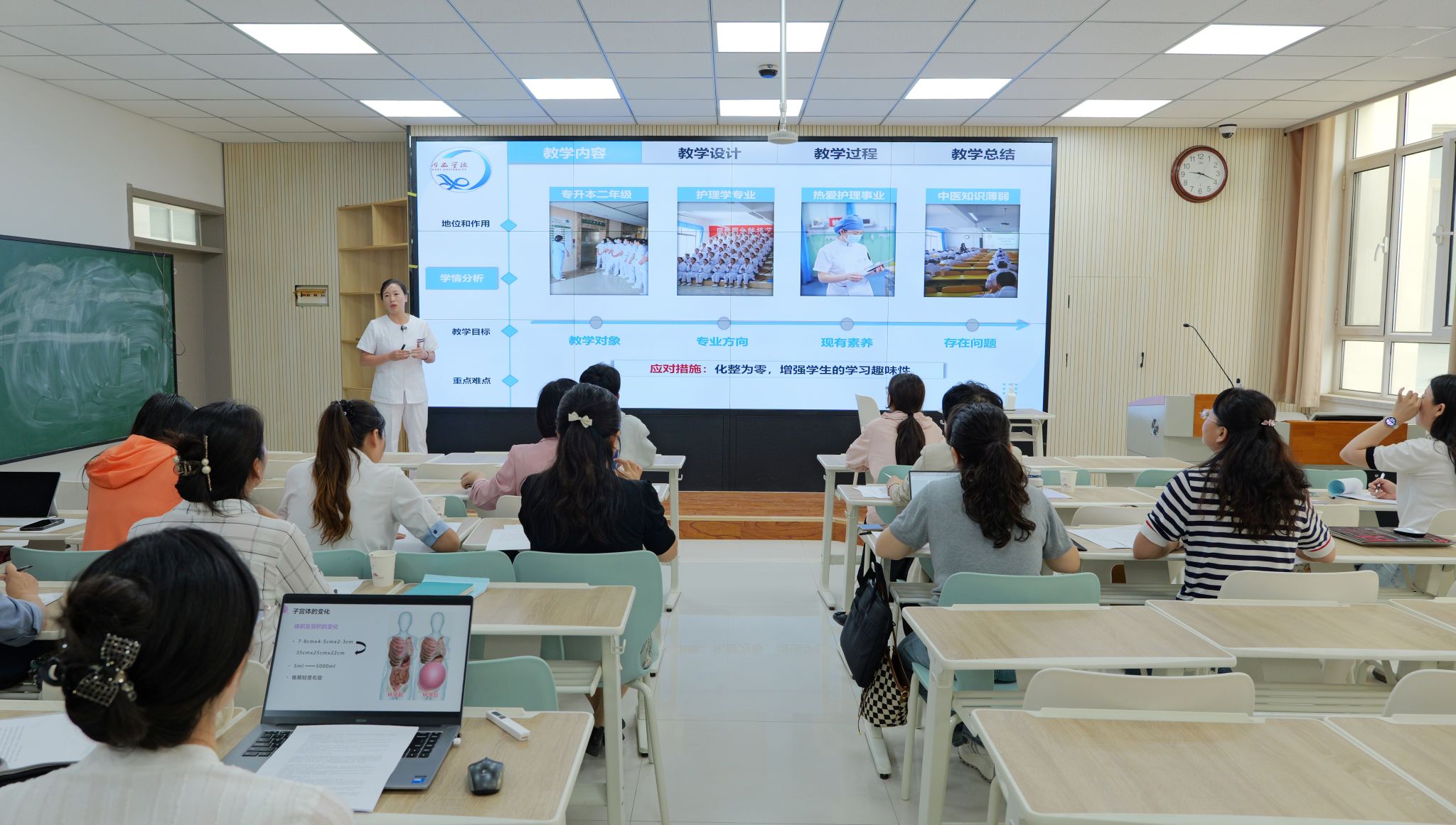 竞赛设置教学设计、课堂教学和教学反思三大环节,全面考察教师教学能力。参赛教师围绕教学目标、理念、内容分析、方法策略及教学安排阐述设计,并在课堂模拟环节灵活运用情景模拟、线上线下混合教学、现场演示等多样化方法进行展示。学院教学督导依据三项内容综合评分,并从教学理念、设计创新与方法运用等方面给予精准点评与指导。